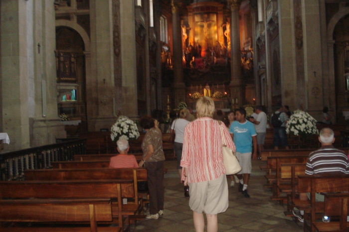 В конце этой грандиозной лестницы с белоснежными перекрещивающимися маршами и одновременно кульминацией всех усилий служит храм Божий, церковь на самой вершине холма. Этот костел в стиле барокко был построен по проекту архитектора Manuel Pinto Vilalobos примерно в 1725г.