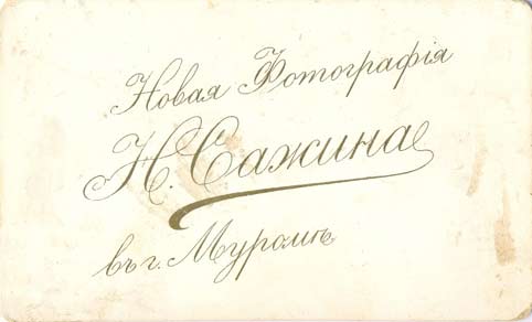 Уроки фотографии Николай Сажин (муромский) получал не только у своего деда и отца, но и у знаменитого нижегородского фотографа Дмитриева. Он посещал его мастерскую во время недолгого проживания в Нижнем Новгороде. Там он познакомился со своей будущей женой - дочерью известного нижегородского адвоката Верой Терновской. Сбежал с ней без родительского благословления, сначала в Арзамас, потом в Муром. Непослушание дочери и зятя почти сразу было забыто родителями Веры. Они были прощены.
